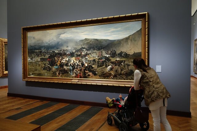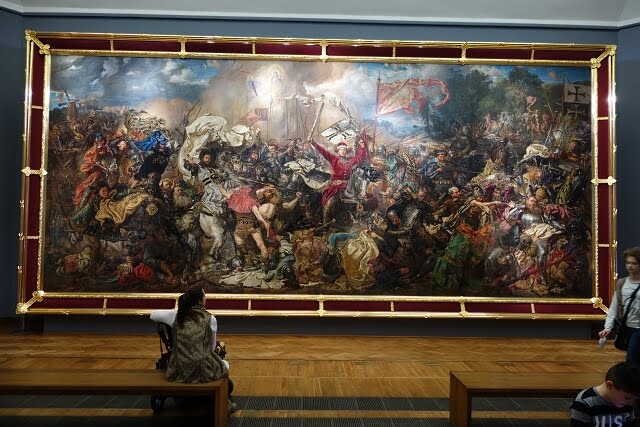 Największą dumą Muzeum jest oczywiście „Bitwa pod Grunwaldem” Jana Matejki, dzieło które powstawało przez cztery lata (od razu sprawdziłam 🙂 ) a były to lata 1875–1878. Wrażenie niesamowite, nic dziwnego że przed obrazem stoją ławki gdyż trzeba na chwilę chociaż usiąść po to by w ciszy przyglądać się temu dziełu a i tak nie sposób dostrzec wszystkiego tak doskonale oddane są najdrobniejsze nawet szczegóły.
