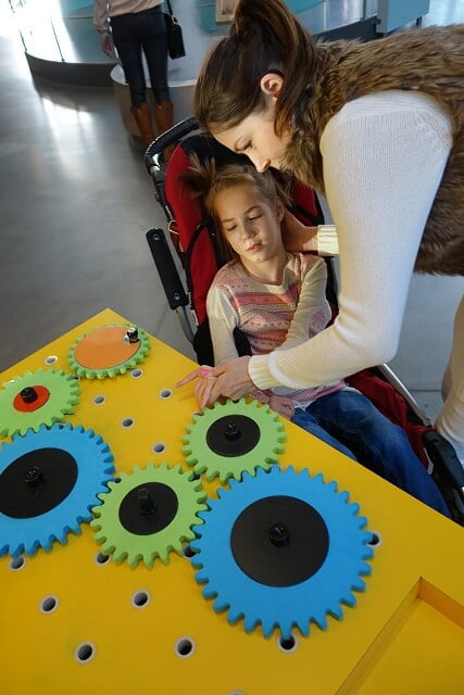 Nie wszędzie mogłam dostać się wózkiem niestety, stoliki czasem były za nisko żeby Jula mogła pod nie wjechać, a niektóre atrakcje były ogrodzone w sposób który uniemożliwiał wjechanie do środka. Korzystaliśmy więc tyle ile się dało a tam gdzie się nie dało Jula obserwowała jak bawią się inne dzieci.