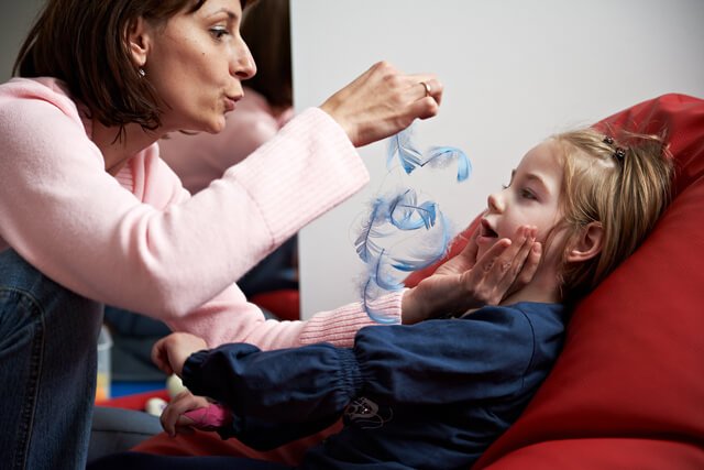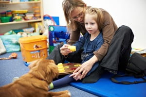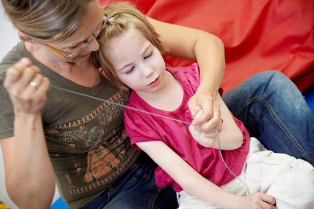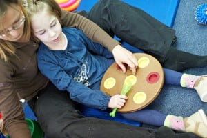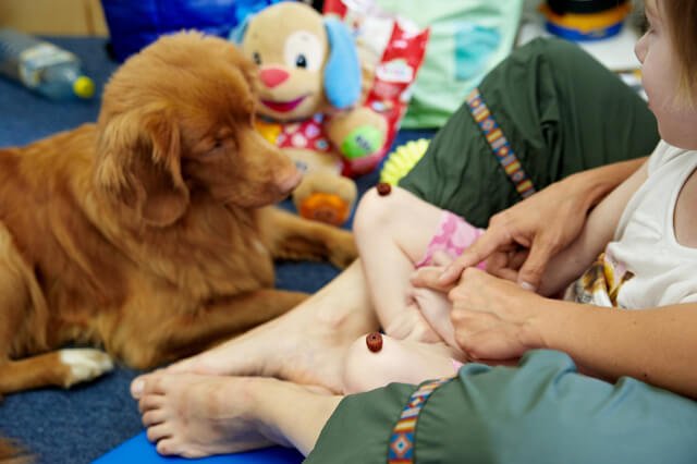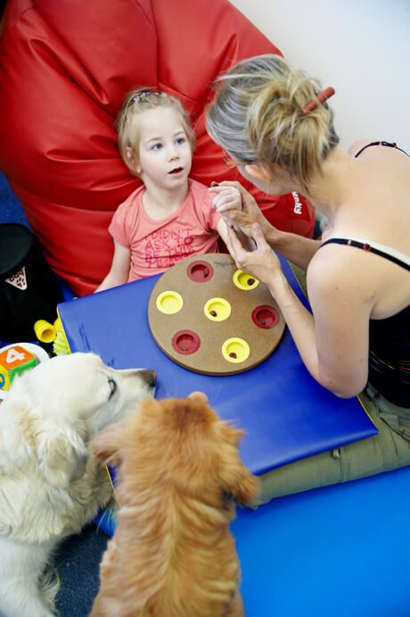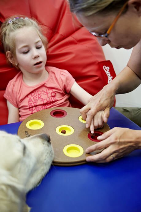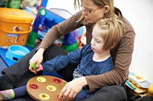 Obok dogoterapii Julcia bardzo lubiła zajęcia z panią Teresą, neurologopedą. Także codziennie. Mnóstwo gier i zabaw edukacyjnych, masaże buźki oraz przesympatyczna i bardzo wesoła pani Teresa to bardzo dobre połączenie 🙂