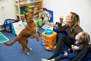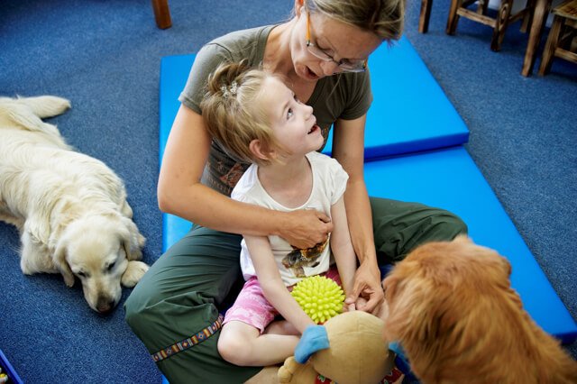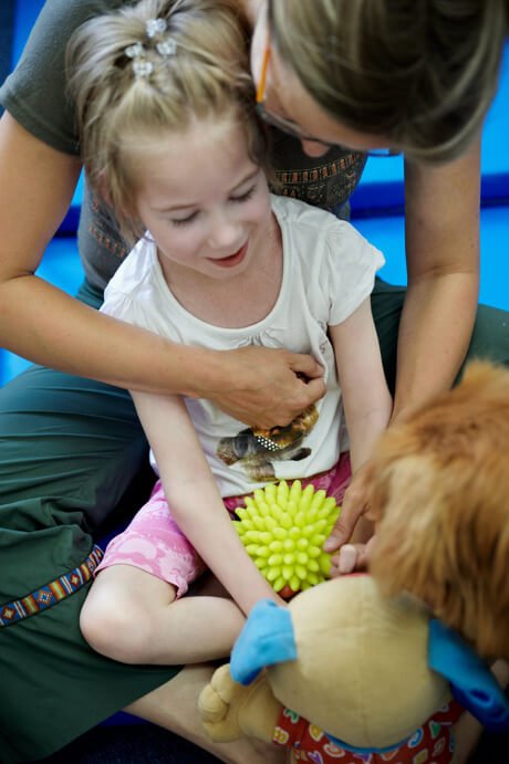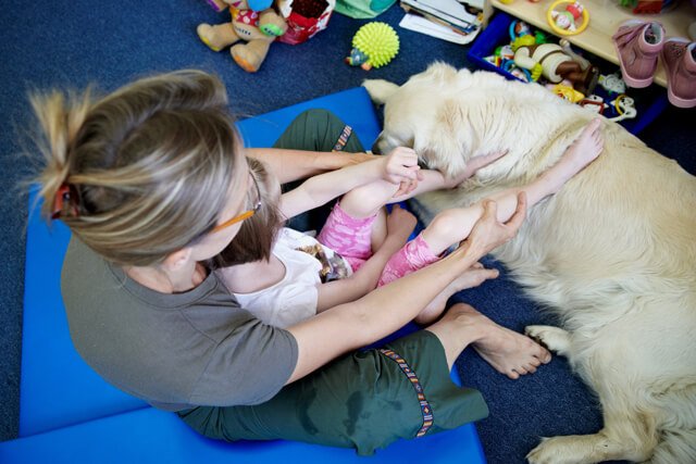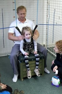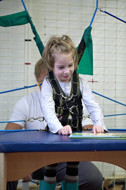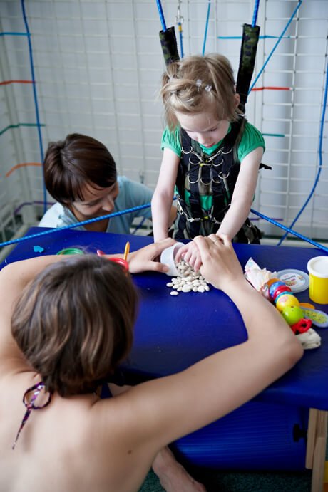 Ćwiczenia na sali, tak jak poprzednio Julcia miała z Olą, dogoterapię z Gosią, zajęcia logopedyczne z panią Teresą a psychologiczne z panią Anią.