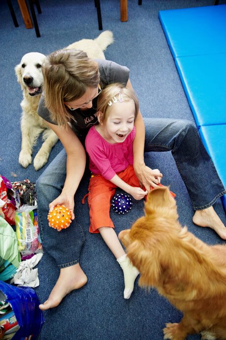 Zajęcia z pieskami to zdecydowania Julci ulubiony sposób spędzania czasu w Michałkowie:) Dlatego były codziennie. Gosia szczerze wzruszyła się gdy Julcia, po przyjściu na pierwsze zajęcia głośnym śmiechem dała do zrozumienia że doskonale pamięta i Gosię i pieski 🙂