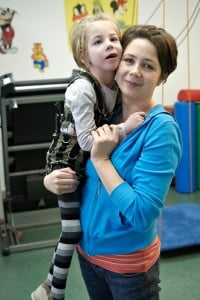 Julcia z uśmiechem witała wszystkich terapeutów, najwyraźniej wszystkich bardzo dobrze zapamiętała. Marudziła trochę na początku ćwiczeń na sali ale tylko przez pierwsze kilka minutek.