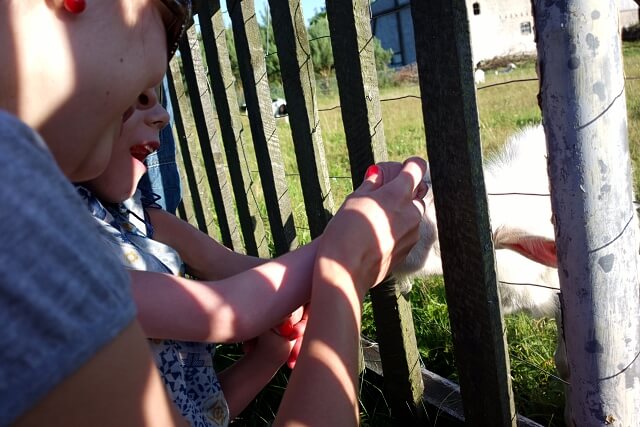 na spacerku jak się okazało można robić dużo ciekawych rzeczy, takich jak zbieranie patyków na ognicho, karmienie kózek o którym już wspominałam czy uciekanie Cioci (tylko czasami… 🙂 )