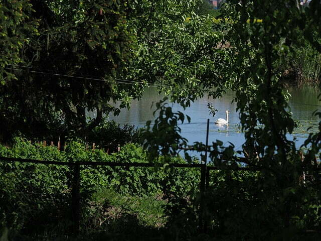 Tam wydarzeniem jest przelot czapli szarej (Natalka – nauczyłam się 😉 ), łabędź, który uwił sobie z panią łabędziową gniazdko na stawie, podpływa do brzegu, prawie dołączając do naszego stołu, czekając wymownie na kawałki chleba, żaby kumkają głośno i zaciekle a co jakiś czas słychać ptaki – za każdym razem inne.