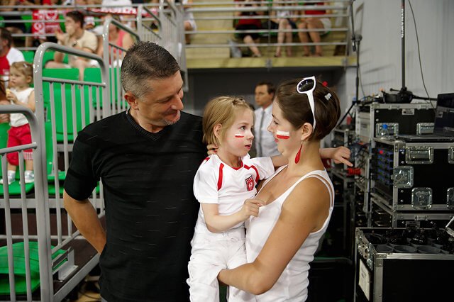 Na boisku pojawił się też w międzyczasie Mariusz Wlazły, ale w „cywilnym” stroju, co sugerowało, że nie zagra, był zresztą wyraźnie czymś zmartwiony, choć uprzejmie pozował do zdjęć z kibicami. Jak się później dowiedziałam jego 1,5 roczny synuś miał mały wypadek w domu, w którym rozbił sobie główkę… Nie wiem co się teraz z nim dzieje ale mam nadzieję, że wszystko będzie dobrze. Trzymamy kciuki za małego Arka.