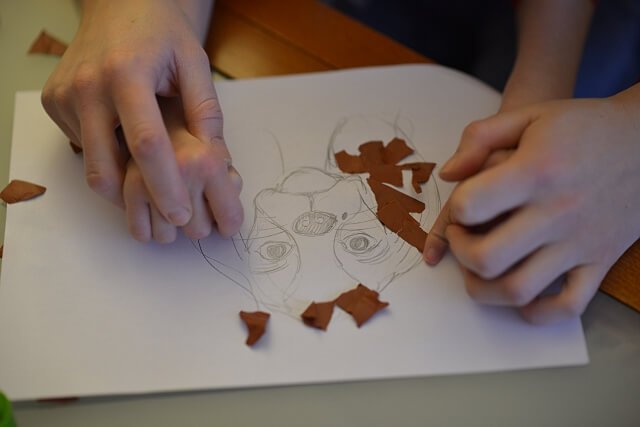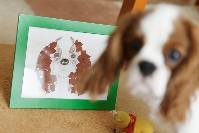 Jak już więc powstał szkic nie pozostawiający wątpliwości co do tematu pracy, zabrałyśmy się z Julcią za wyklejanie tego co w Lakim jest najsłodsze czyli Jego długich włochatych uszu 🙂