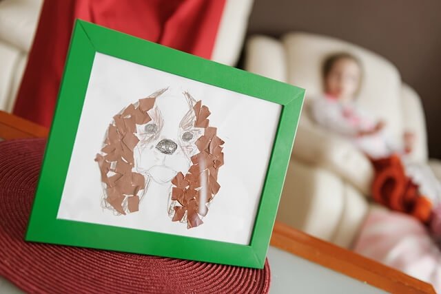 Trochę kolorowego papieru, klej, nasze paluszki i powstała mordka Lakunka 🙂