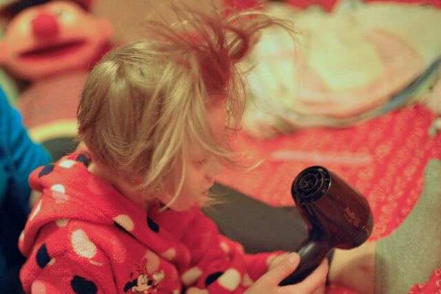 suuuuuszenie włosków – niezbyt ulubiona czynność Julci, aczkolwiek, z racji jej długo schnących gęstych włosów – konieczna, okazało się fajnie wygląda na zdjęciach 🙂