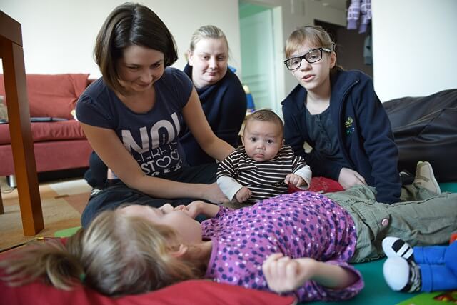 tutaj na zdjęciu śpi snem kamiennym po pierwszym w swoim życiu zetknięciu z naszym Sebastianem i vojtą 🙂 Tomuś potrzebował kilku sesji ze względu na kłopoty ze snem i refluks. Po każdej sesji przesypiał całą noc z jednym tylko budzeniem, podczas gdy w pozostałe noce nie dawał Mamie za wiele pospać… Tomuś bardzo dzielnie znosił ćwiczenia a Jula dosyć zdziwiona siedziała ze mną obok i pewnie się zastanawiała jak to jest że to nie ona ćwiczy 🙂 i grzecznie czekała na swoją kolej 🙂
