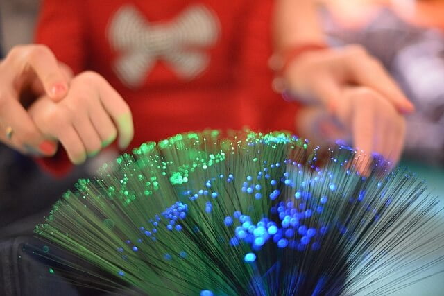 w kwestii Mikołaja to nie wszystko bo prosto od Babci i Dziadka z Anglii przyszła paczuszka w której między innymi były przecudne światełka na światłowodach, którymi Julcia była oczarowana, siedziałyśmy tak nad nimi i mieszałyśmy rączkami bardzo długo bo oprócz fajnej zabawy to świetna stymulacja rączek dla Julci.