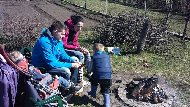 Tymczasem wiosna się rozkręciła, słońce wyciąga z domu, Jula w tygodniu, ze szkołą, zaliczyła już pierwsze ognisko z kiełbaskami w terenie, my w weekend poprawiliśmy kolejnym. W niedzielę zajmowaliśmy się głównie byciem na dworzu a konkretnie na działce u rodzinki, gdzie ochoczo smażyliśmy kiełbaski na ognisku. Słoneczko było przecudne po prostu, może mogłoby być nieco więcej stopni ale nie można mieć wszystkiego. Najważniejsze że weekend spędziliśmy rodzinnie i wesoło.