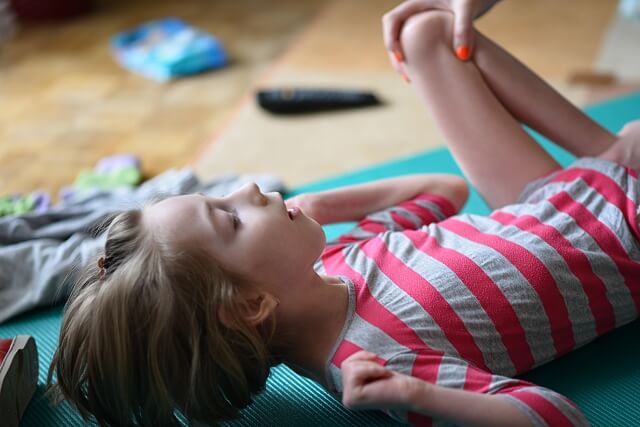 I właśnie dzięki tej motywacji Jula coraz śmielej odrywa głowę od podłogi żeby jak najlepiej wyjrzeć zza zasłaniających jej bajkę obiektów (głównie mnie). A ponieważ nie buntuje się przy tym i nie wygląda żeby było to dla niej ogromnym wysiłkiem, zostawiamy ją jakiś czas, żeby sobie troszkę przy okazji poćwiczyła, bo nie daje siłaczka za wygraną 🙂 Oczywiście mogłabym ją w kilka sekund wygodnie ułożyć na poduszeczce ale przecież trzeba sobie w życiu czasem coś samemu wywalczyć bo i satysfakcja większa 🙂