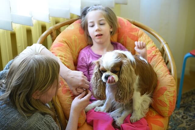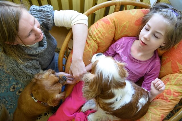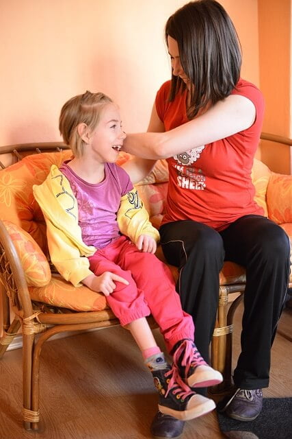 Potem co się działo nie wiem, bo Jula i pieski zdecydowanie lepiej się skupiają jak rodziców nie ma w zasięgu wzroku, ale jak przyszliśmy po godzince ją odebrać było widać że spotkanie było bardzo udane 🙂 Jula pobawiła się we fryzjera i zrobiła pieskom z uszek dwa cudne kiteczki z kolorowymi froteczkami (nie miałam już wtedy ze sobą aparatu więc nie uwieczniłam tego wesołego obrazka) terapeutka powiedziała że Jula przy głaskaniu piesków ślicznie otwierała rączki i rozluźniała się. Do tego było dużo śmiechu bo przecież trzeba od czasu do czasu odsapnąć od poważnych terapii, choć te przy których jest tak wesoło nie są mniej ważne 🙂