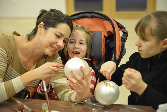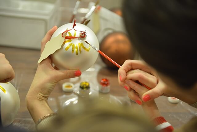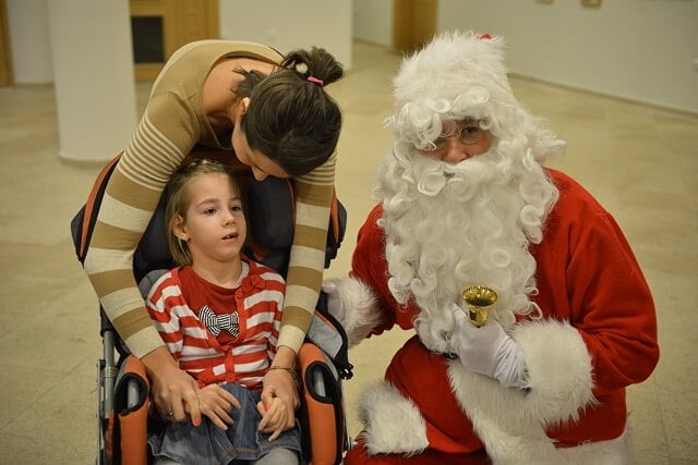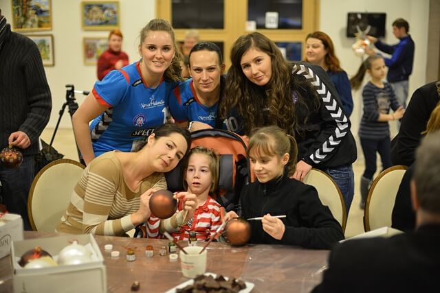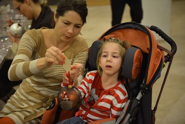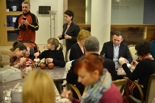 Oprócz Julci było jeszcze kilkoro dzieci niepełnosprawnych i każde z nich malowało swoje bombeczki. Zawitał do nas nawet Mikołaj (póki co tylko pozował do zdjęć, z misją świąteczną pewnie wyruszy później 🙂 )