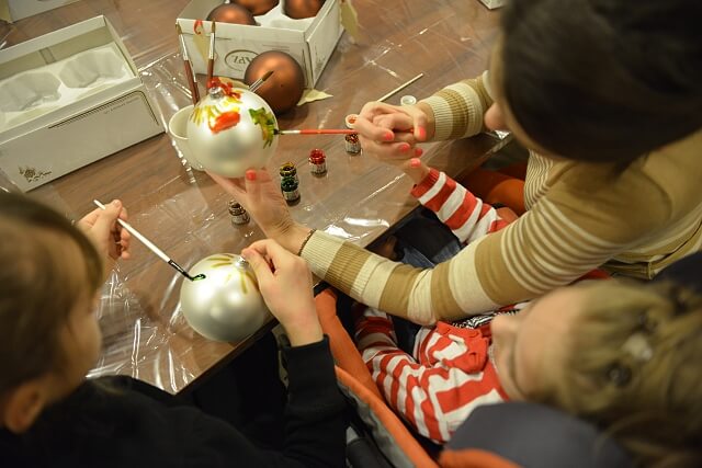 Nieco takiego świątecznego ducha udało nam się zaczerpnąć w miniony weekend, kiedy w towarzystwie lokalnych sportowców i władz miasta malowaliśmy bombki. Konkretnie to oczywiście malowała je Julcia, bo to ona była zaproszona na to spotkanie przez fundację Dlaczego Pomagam, ja tylko trzymałam jej rączkę a Tata niestrudzenie dokumentował wszystko zdjęciowo 🙂 Julci bardzo się podobało malowanie, bombki były duże i bardzo ładne, specjalne farbki mieniły się i błyszczały, ogólnie było bardzo sympatycznie. Jula pomalowała, z zaangażowaniem godnym artysty, dwie bombeczki, Wiki, która z nami była, kolejne dwie, była to naprawdę fajna zabawa.