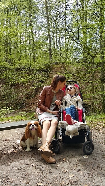 Jula, choć nieco zniecierpliwiona monotonią spaceru, z czasem doceniła wpływ świeżego powietrza (i trochę naszych wygłupów urozmaicających jej czas… 🙂 )