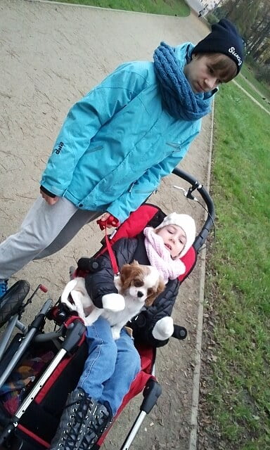 W południe byłam na naszym pierwszym wspólnym spacerku z Lakim i Julcią, Damian był w pracy ale była z nami Wiki bo to pierwszy taki poważny spacer i nie wiadomo czego można się spodziewać…