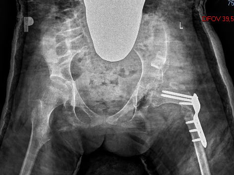 Jak widać na drugim zdjęciu biodro jest wzmocnione blachami przymocowanymi na śruby, ten „zestaw” będzie do wyjęcia za rok od operacji czyli w maju przyszłego roku.