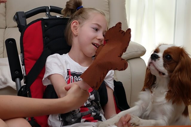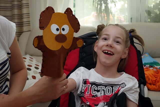 Z książeczek wypychanek robiłyśmy biedroneczki i pajączki (takie bardzo przyjazne Żabciu 🙂 ) ze specjalnych drucików z kolorowym futerkiem różne kształty („różne” ma tu znaczenie kluczowe bo zdolności manualno-plastyczne to coś czego zdecydowanie nie posiadam…) i wreszcie przesłodkiego pieska-pacynkę co zostało uwiecznione na zdjęciach 🙂