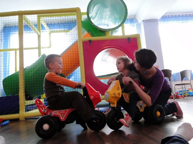 No ale przecież miało być o zabawie 🙂 Julcię czeka ciężki turnus, więc trzeba się odstresować, dlatego dziś spędziliśmy popołudnie w tzw. „kuleczkach” 🙂 z dwoma kuzynami Julci. Odebrałam Julcię z przedszkola i poszliśmy prosto na plac zabaw. To najlepsze miejsce na spędzenie deszczowego popołudnia. Szczerze mówiąc aż mi głupio, że częściej tam nie chodzę bo „Aniołowo” (tak nazywa się ten plac zabaw dla dzieci) jest dokładnie na przeciwko moich okien, trzeba przejść na drugą stronę ulicy… Ale mamy z Martą (męża siostrą) plan – będziemy się tam wybierać częściej 🙂 a dwie zmotywowane pozytywnie Mamy to nie jedna 🙂